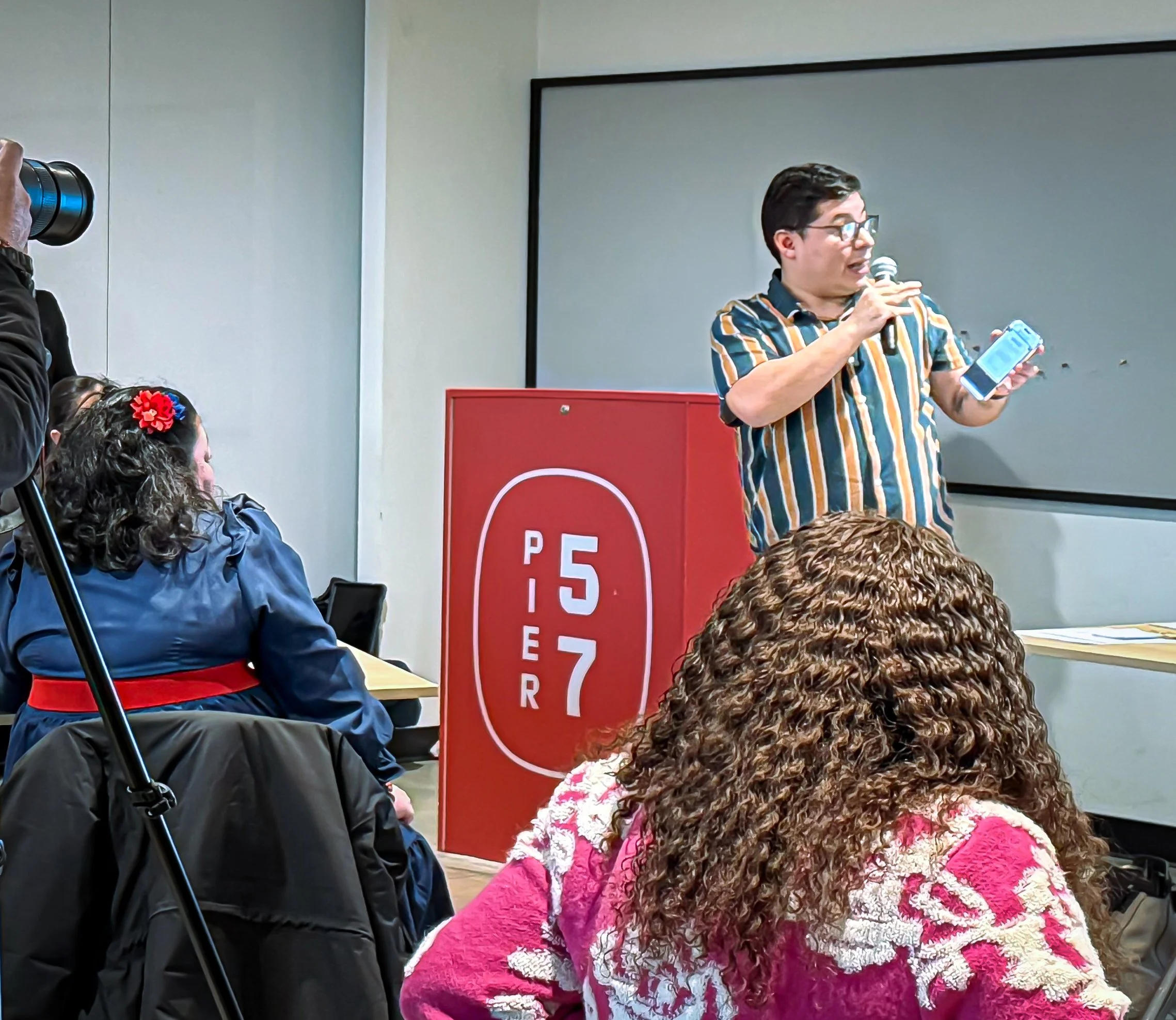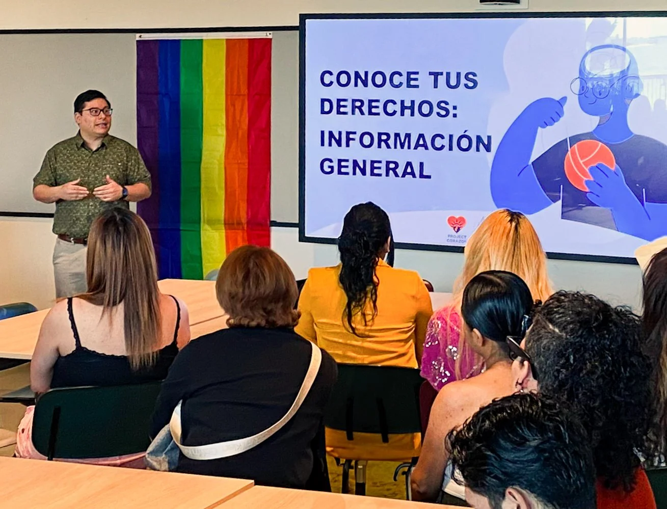 Estuardo Cifuentes, Project Corazón Program Manager, delivering an in-person Know Your Rights session for asylum seekers.
