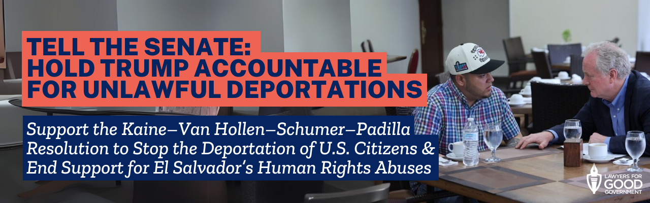 Thank you for taking action to demand accountability from the Trump administration. Your voice helps protect the rule of law and stop the use of U.S. resources to support unlawful deportations and human rights abuses.
